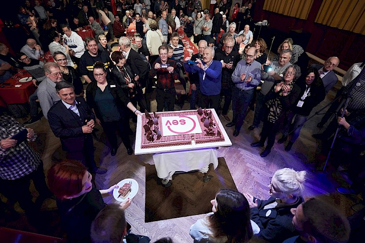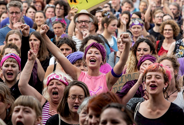 Nach Frauen umbenannte Strassen, Programm-Flyer, die frühmorgens vom SEV in den grossen Bahnhöfen der Schweiz verteilt wurden, sowie ein SEV-Radioballett in Bern und Zürich. Brunchs, Gesänge, Workshops und Vorträge. Lauter kreative Aktionen, die Sexismus, Lohnungleichheit, ungerechte Arbeitsaufteilung, sexuelle und häusliche Gewalt und die psychische Arbeitslast anprangern. Eine Schweigepause, dann viel Lärm und Gepfeife. Ein grosses Fest und viel Entschlossenheit!