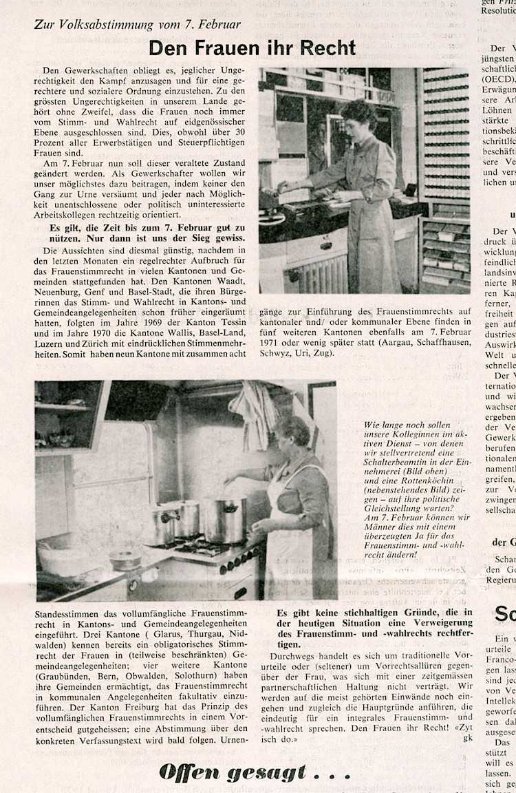 Am 7. Februar 1971 wurde in der Schweiz das Frauenstimmrecht eingeführt. Im Wahlkampf war auch der SEV stark engagiert