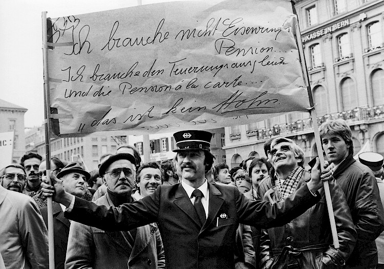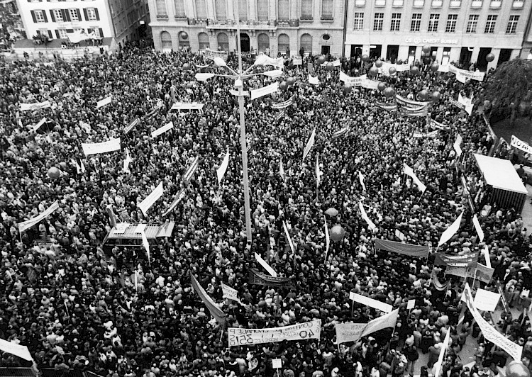 Am 27. November 1982 demonstrierten 35'000 Angehörige des Bundespersonal für die mit dem Bundesrat bereits ausgehandelte, aber vom Parlament verzögerte Einführung der 42-Stunden- Woche.