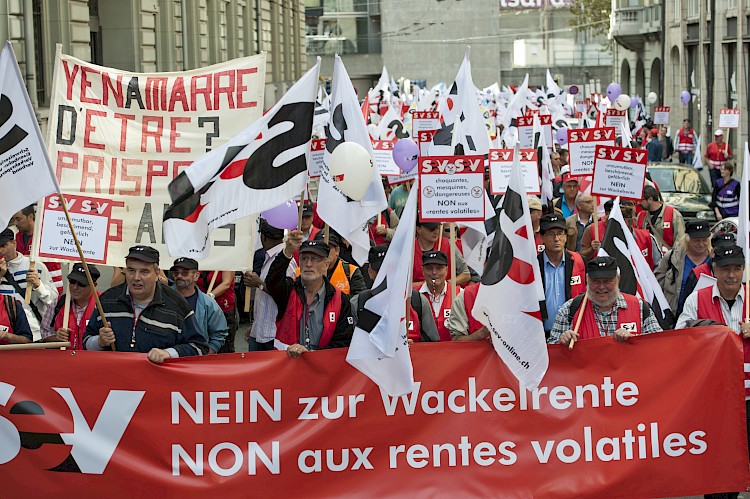 Am 21. September 2013 zogen rund 15000 Gewerkschafterinnen und Gewerkschafter durch Bern, dies unter dem Motto «Stoppt Lohndumping und Rentenklau». Der SEV thematisierte insbesondere die absurde Idee der «Wackelrente» der Pensionskasse SBB.