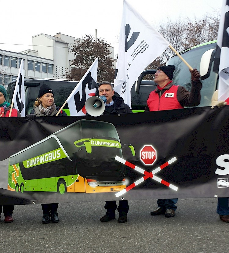 Am 8. Dezember schlug der SEV Alarm gegen die Sozial- und Lohndumpingpraktiken der Fernbusunternehmen, allen voran Flixbus. Er organisierte eine Aktion vor den Medien in Zürich und Genf.