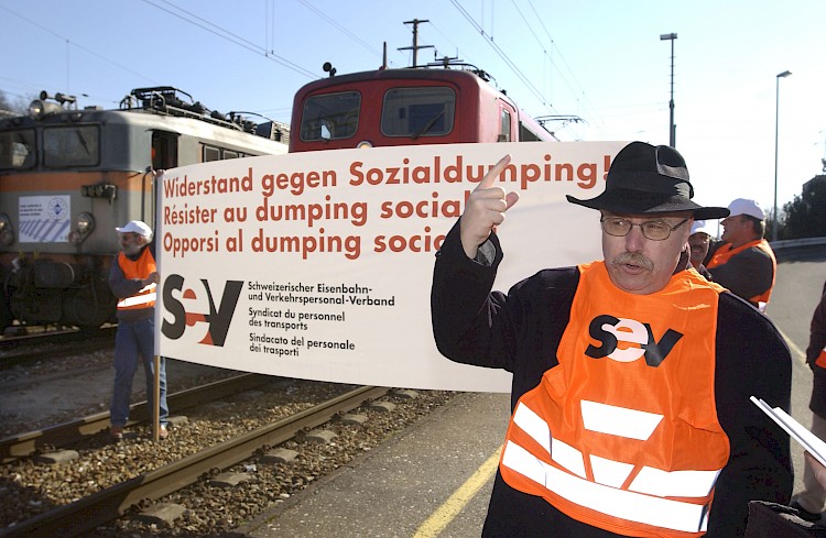 Aktion des SEV und der ETF am Rangierbahnhof Muttenz gegen Sozialdumping.