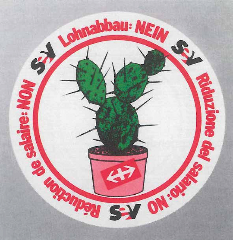 1996 verordnete der Bundesrat erstmals seit 1936 wieder einen Abbau der Nominallöhne. Der SEV berief am 8. August 1996 einen ausserordentlichen, mit einer Demonstration verbundenen Kongress ein. In den nächsten Monaten ergriff das SBB-Personal diverse Protest- und Kampfmassnahmen. Öffentlich am sichtbarsten waren die Protestkleber mit einem grossen Kaktus, die an Lokomotiven angebracht wurden.