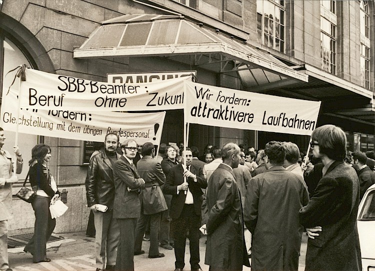1500 Mitglieder beteiligten sich an der Protestkundgebung des Unterverbands der Stationsbeamten (SBV) am 16. September 1972: Das Stationspersonal konnte im Rahmen